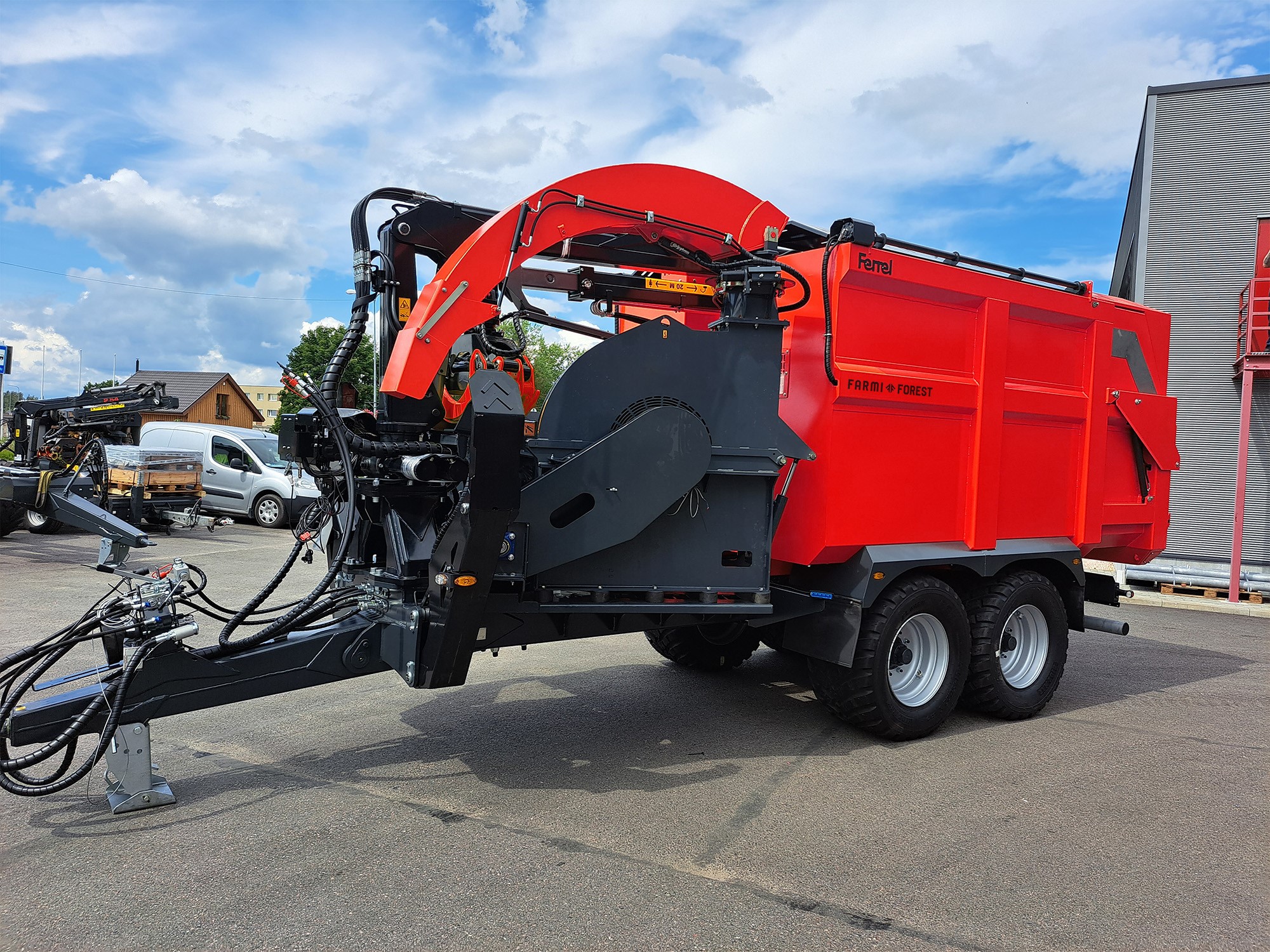 FARMI FOREST/FERREL VEČNAMENSKA TRANSPORTNA PRIKOLICA Z MLINOM ZA SEKANCE IN DVIGALOM